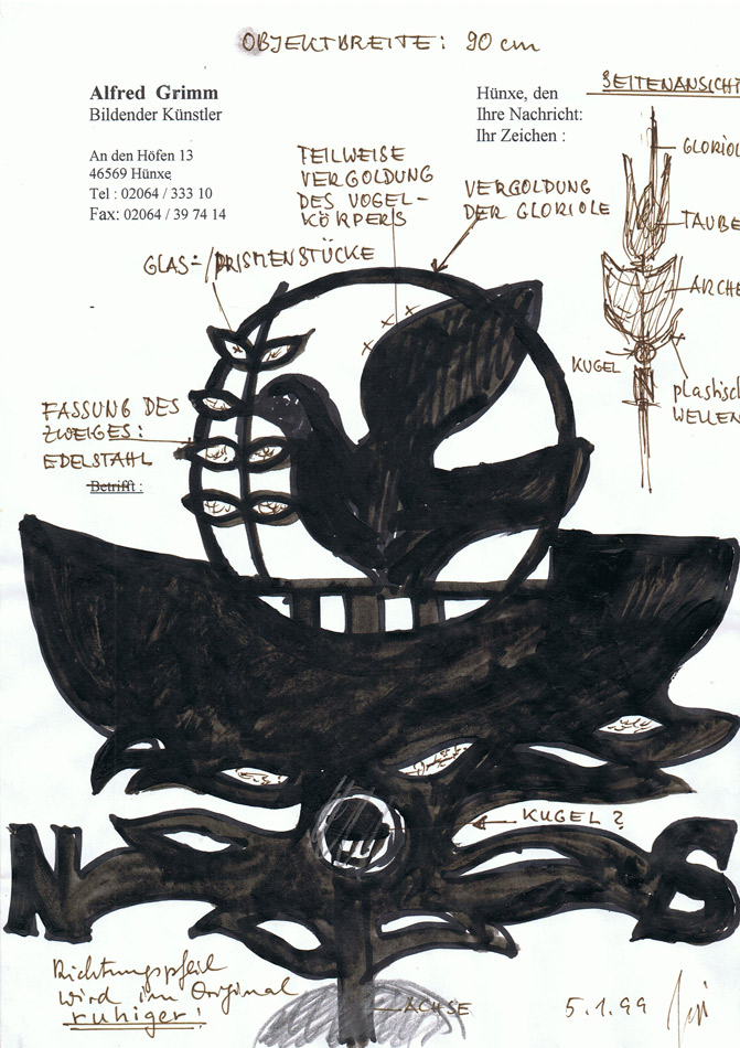 Alfred Grimm mit dem Entwurf für die Turmbekrönung, 1999